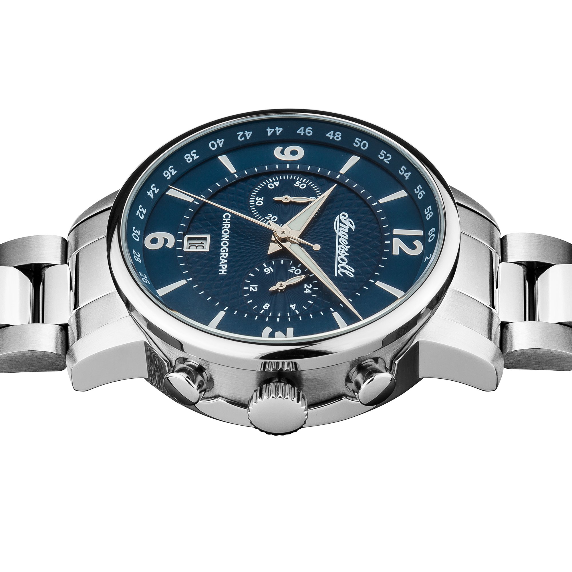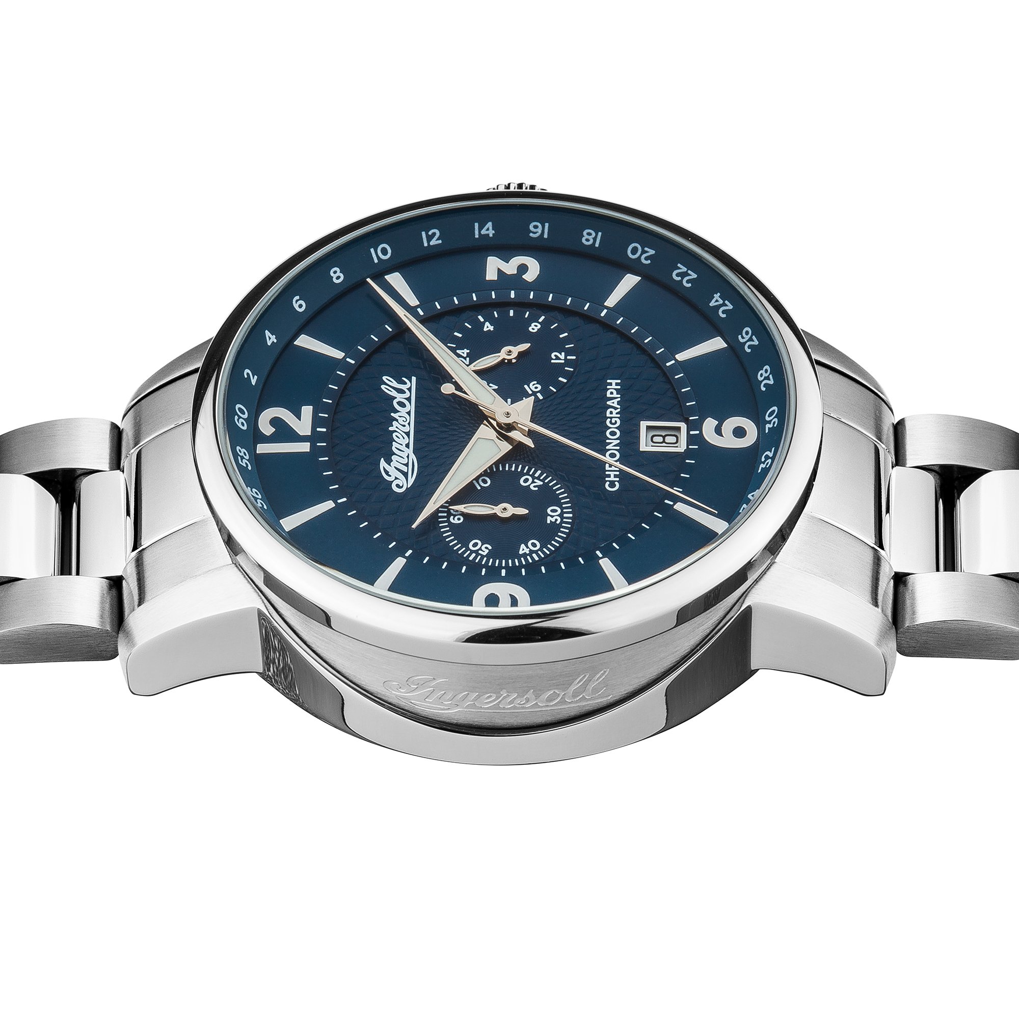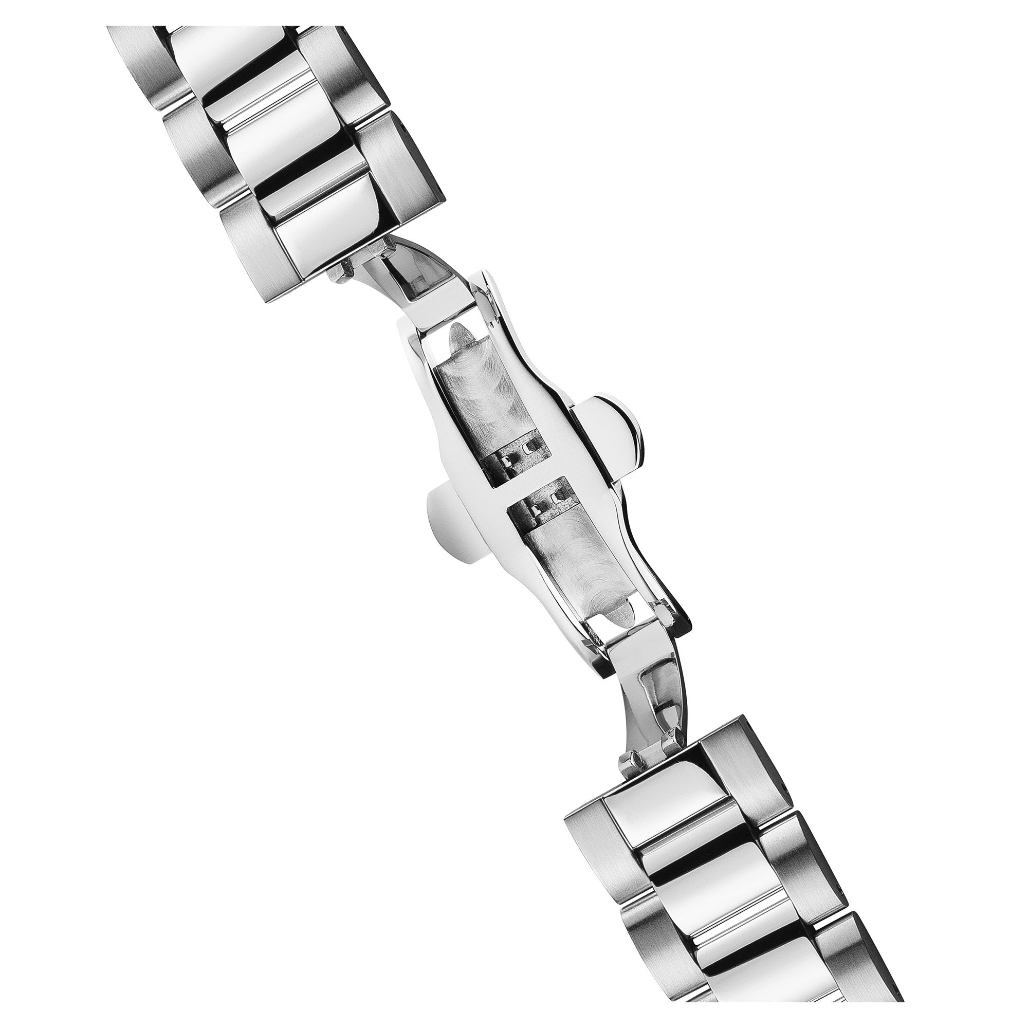 Edelstahl-Gehäuse, zum Teil poliert, geschraubter Gehäuseboden, Mineralglas, wasserdicht solange bis 5 auf die Kralle, Breite 42 mm, Berg 15 mm, Armband aufgebraucht mattem Edelstahl, mittig poliert, Schmetterlings-Faltschließe qua Drücker, präzises Quarzwerk, Datumsanzeige, Stoppuhr, 24-Stunden-Annonce, dunkelblaues Zifferblatt qua feiner Musterung, polierte Tarnname, Zahlen des Weiteren Indizes, Leuchtzeiger
