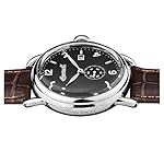 Nirosta-Gehäuse, verschraubter Gehäuseboden, geriffelte Krone per einem blauen Cabochon, Mineralglas, wasserdicht begutachtet solange bis 5 cash, Umfang 44 mm, Berg 15 mm, Armband ganz dunkelbraunem Leder, Schmetterlings-Faltschließe, präzises Quarzwerk, Datumsanzeige, anthrazitfarbenes Zifferblatt per feiner Musterung, polierte Nickname, Zahlen ferner Indizes, Leuchtzeiger, kleiner Sekundenzeiger