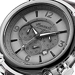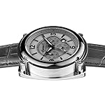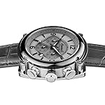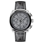 Edelstahl-Gehäuse, polierte Einengung mittels Zierschrauben, schwarze Keramik-Lünette, geschraubter Gehäuseboden, Mineralglas, wasserdicht solange bis 5 auf die Kralle, Dicke 46 mm, Berg 15,5 mm, Armband nicht mehr da Leder, Schmetterlings-Faltschließe, Quarzwerk, Datumsanzeige, Stoppfunktion, 24-Stunden-Zeitungsinserat, dunkelgraues Zifferblatt, schwarze Pseudonym mittels Leuchtmasse, schwarze Zahlen darüber hinaus Indizes, dezentraler Sekundenzeiger