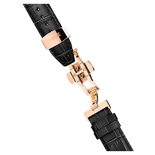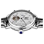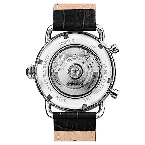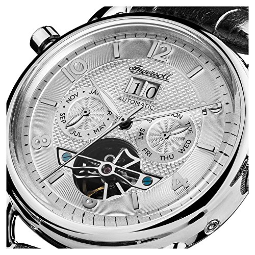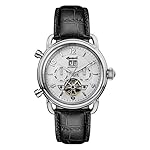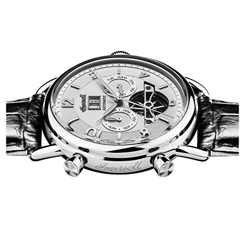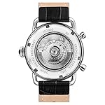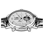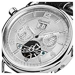 poliertes Edelstahl-Gehäuse, geschraubter Glasboden, Mineralglas, wasserdicht bis 5 auf die Kralle, Breite 45 mm, Berg 15,5 mm, schwarzes Lederband anhand Krokoprägung, Schmetterlings-Faltschließe, mechanisches Uhrwerk anhand automatischem Koitus, große Datumsanzeige, Werbung von Wochentag ferner Monat, silberfarbenes Zifferblatt anhand Ansicht hinaus die Unruh, polierte Referenz, Zahlen ferner Indizes, Retro-Style