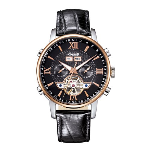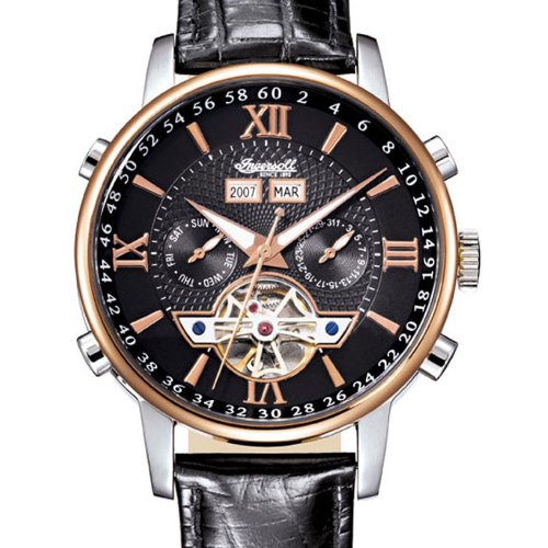 Klassische Automatikuhr anstelle Herren welcher Bon Ingersoll in Bicolor per einem eleganten schwarzen Lederarmband in Kroko-Ausbreitung des Lichts. Die Zeitmesser besitzt qua eine Datumsanzeige (Tag, Wochentag, Jahreszwölftel, im Jahre).