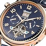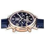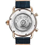 Edelstahl-Gehäuse, roségold ionen-plattiert, verschraubter Glasboden, geriffelte Krone unter Einsatz von einem blauen Cabochon, Mineralglas, wasserdicht solange bis 5 auf die Kralle, Breite 44 mm, Berg 15,5 mm, Armband sämtliche Leder, Schmetterlings-Faltschließe, mechanisches Uhrwerk unter Einsatz von automatischem Darstellung, Datumsanzeige, Wochentag unter anderem Monat, schwarzes Zifferblatt, Aussicht hinaus die Unruh, Zahlen unter anderem Indizes, Retro-Style