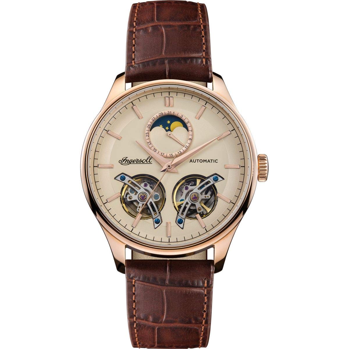 Ingersoll herren uhr. Rose vergoldet stahl gehäuse Rehbraun zifferblatt. Automatik bewegung. Wasserdichtigkeitszertifizierung 50 meter.