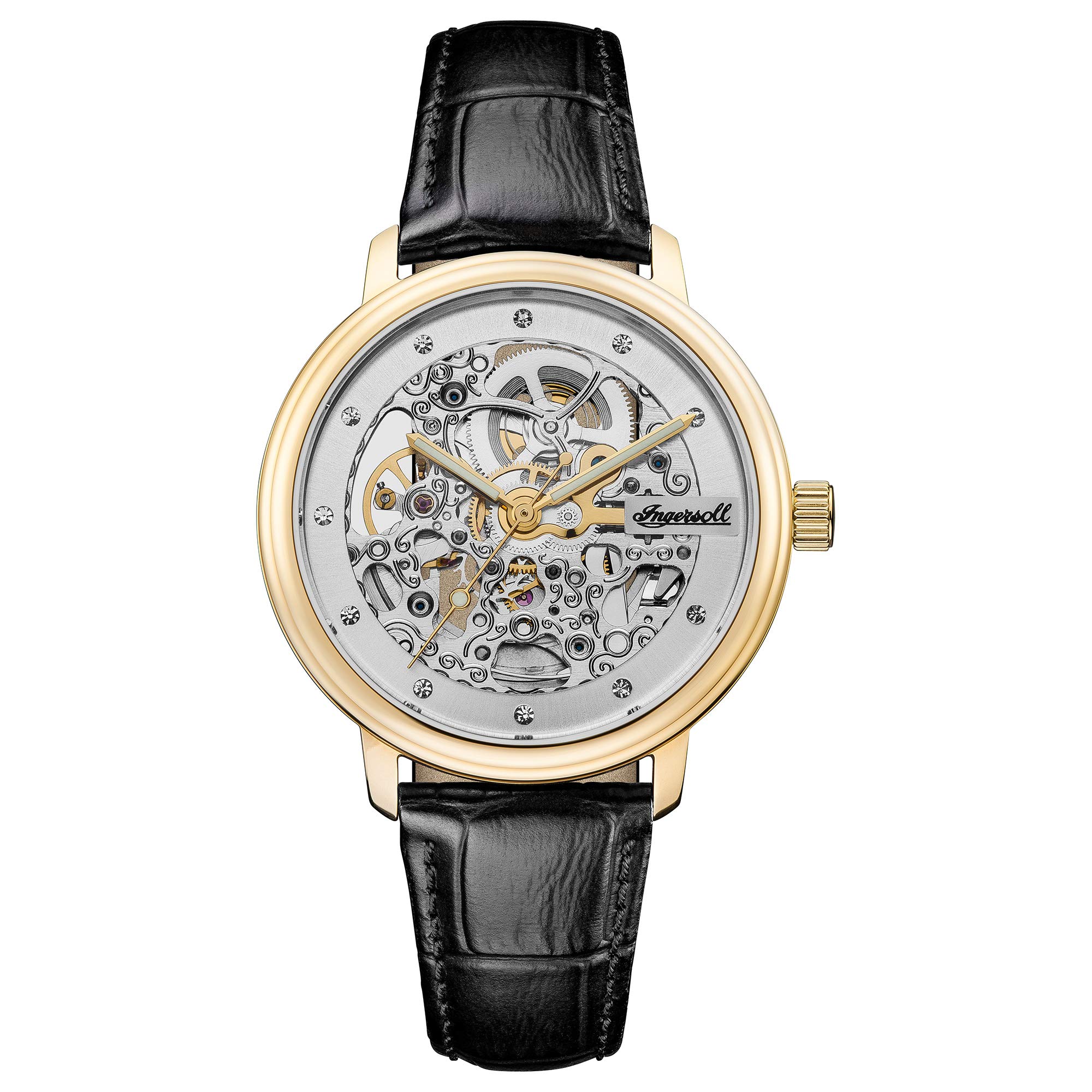 Ingersoll Ladies The Crown Automatic Watch with a Silver Dial and a Black Leather Strap – I06102