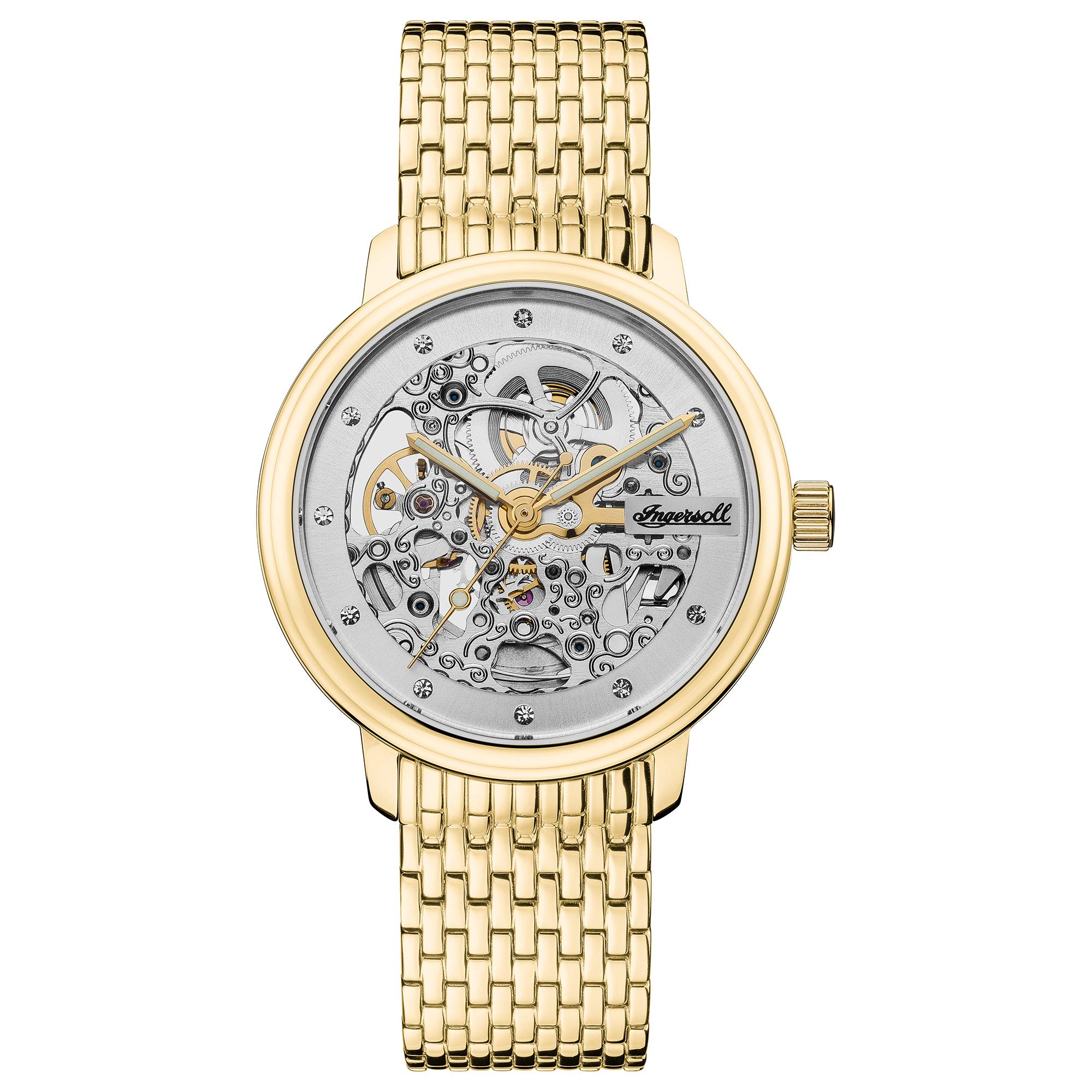 Ingersoll Ladies The Crown Automatic Watch with a Aurum Dial and a Aurum Stainless Steel Strap – I06103