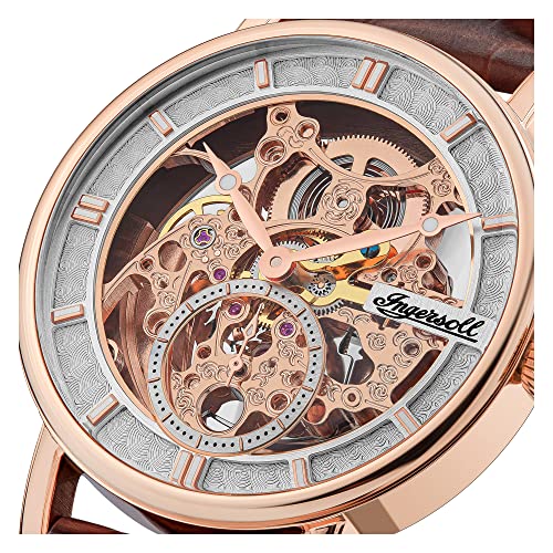 Ingersoll The Herald Herren- Automatikuhr, 40 mm, mit skelettiertem Zifferblatt und echtem Lederarmband I00401B
