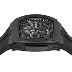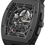 The Rim: Eine automatische Herrenuhr durch einem bezaubernden schwarzen Skelettziffernblatt, in einem 42-mm-Edelstahlgehäuse durch kratzfestem Mineralglas und einer Wasserbeständigkeit von 50 m.